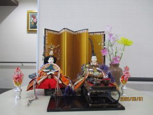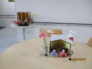 長寿荘のエントランスホールに雛人形を飾りました。