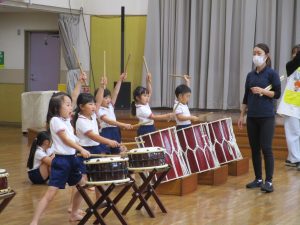 いよいよ本番。朝から衣装を着て集合した子どもたちは元気いっぱい! アトラクションでは、「brother beats」によるドラム演奏を聴きました。 前半最後の子どもたちの演奏はとても上手でしたね!最後までよく頑張りました […]
