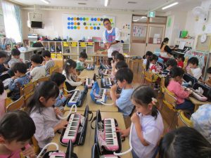 発表会に向けての練習が始まっています。 ひまわり組では、メロディオン演奏の練習の真っ最中です! 音階や指使いも少しずつ上手になり、発表会での披露が楽しみですね。