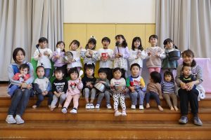 総勢21名の11月生まれの子どもたちが集まりました! 注目の中の自己紹介も上手にできましたね! お楽しみは、「間違い探し」と「キッチンオーケストラ」・・・。お鍋やボールをお玉やしゃもじで音楽に合わせて音を奏でます。 これ […]