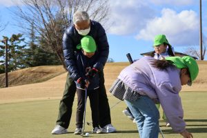 お天気にも恵まれた今日、年長児はサンコーカントリーにて芝そりとパターゴルフ体験を行いました。 いい具合に芝も枯れていて、ソリもよく滑ります! パターを始めて持つ子も多く、打ち方を教えてもらいホールインワンを狙いますが、な […]