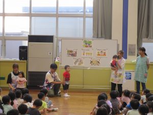 2025年8月20日 / 最終更新日 : 2025年9月1日 三恵保育園 9月の朝礼 朝礼を行った今日は防災の日。 子どもたちにも防災についてお話をしました。お家に防災リュックの用意があるという子、冷蔵庫に災害用のチョコレートがあるよと話す子など、興味をもって知ることは大切なことですね! 9月には4人の新しいお友達が仲間入り!まだまだ暑いけど元気に頑張りましょう!