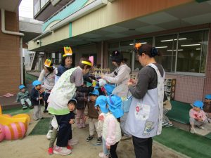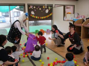 2025年10月31日 / 最終更新日 : 2025年10月31日 三恵保育園 happy Halloween 10月も最後になりました! ハロウィンの今日は、それぞれのクラスで志向を凝らしたゲームで盛り上がっていました。 かくれんぼや玉入れ、宝探しと子どもたちのにぎやかな声が響きます♪ 給食もおやつもハロウィン仕様で、見て楽しい、食べておいしいメニューでした!