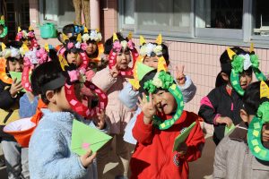 2026年2月3日 / 最終更新日 : 2026年2月4日 三恵保育園 節分の豆まき👹 季節の変わり目に現れる鬼を退治するため、元気に豆まきをしました。 赤鬼青鬼を怖がりながらも「鬼は外!」と必死で豆を投げる子どもたち・・・。 お部屋に現れた鬼とも「いい子にするよ!」と約束して節分の豆まきは無事に終了。 給食で美味しい恵方巻も食べて、今年も春を迎える行事として楽しい一日を過ごしました。
