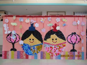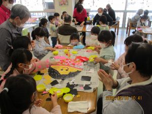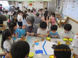 ひまわり組の子どもたちがアミカル入居者の方々とお雛様作りを行いました。