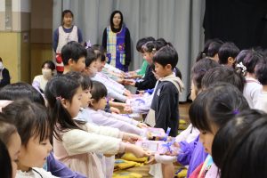 ひまわり組さん手作りのプレゼントをもらったゆり組さんはとても嬉しそう・・・メロディオンの演奏も心が温かくなりました❤