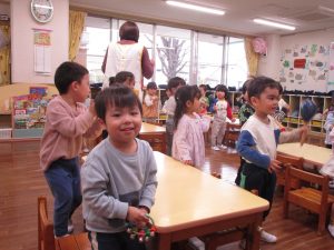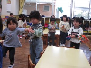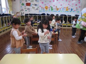 2026年3月18日 / 最終更新日 : 2026年3月18日 三恵保育園 楽器遊び ちゅうりっぷ組では楽器遊びの真っ最中! タンバリン・鈴・トライアングルの他にもマラカスやギロやアゴゴベルまで、子どもたちが好きな楽器を持って鳴らしていました。 「きらきら星」の曲に合わせ、先生たちもトーンチャイムを持って大合奏🎵素敵な音楽会でした!