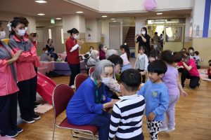 4月生まれのお友だちと先生、そして長寿壮とアミカルの入居者の方々の合同お誕生会です🌷